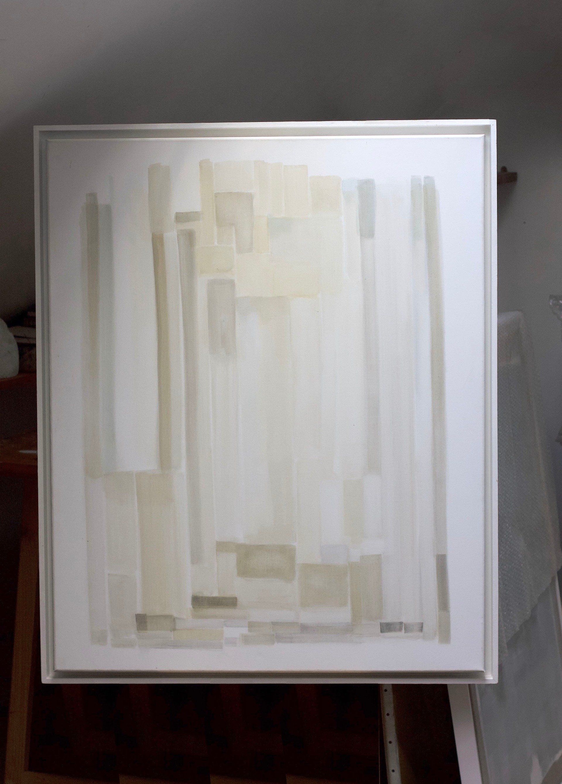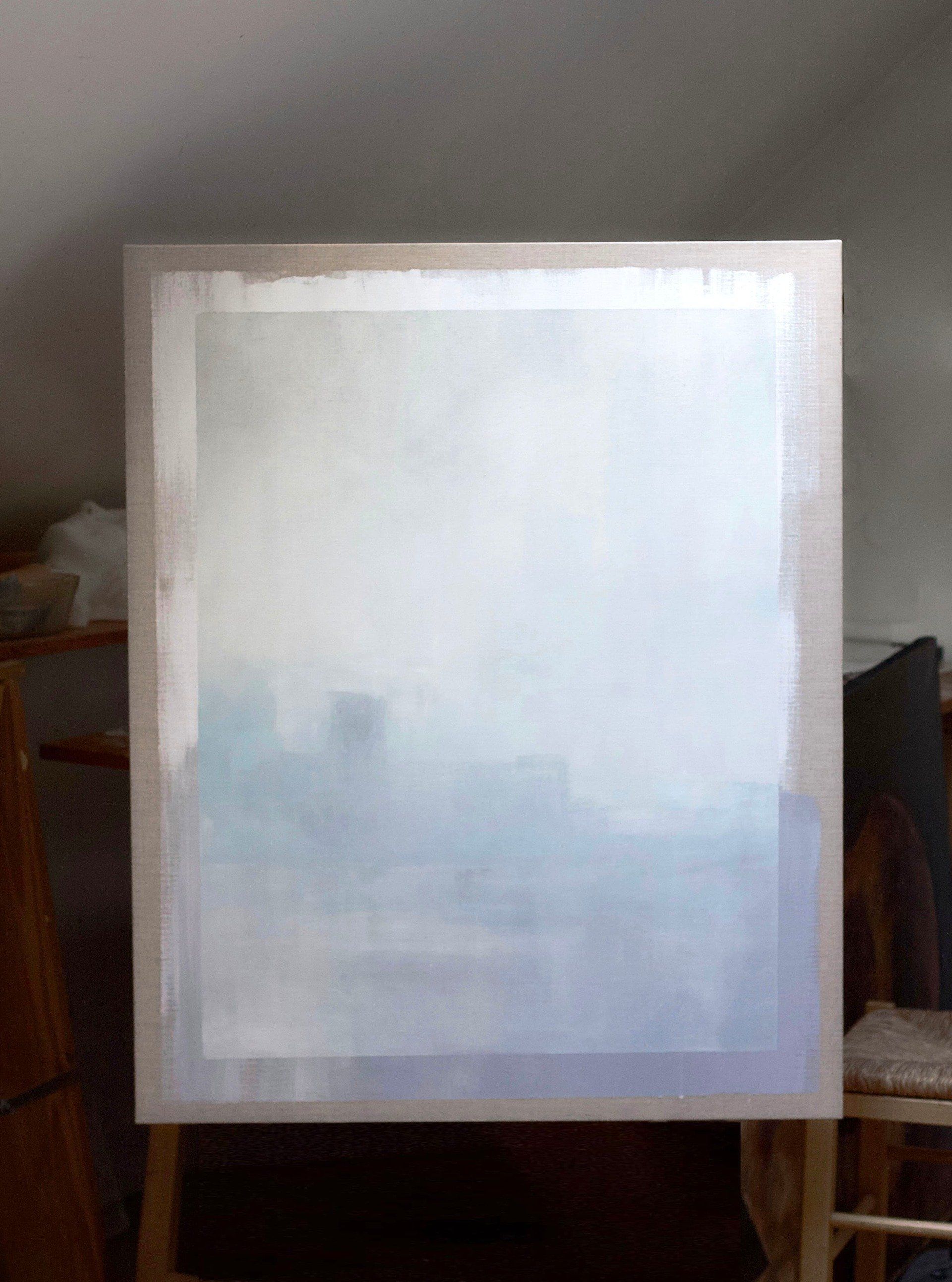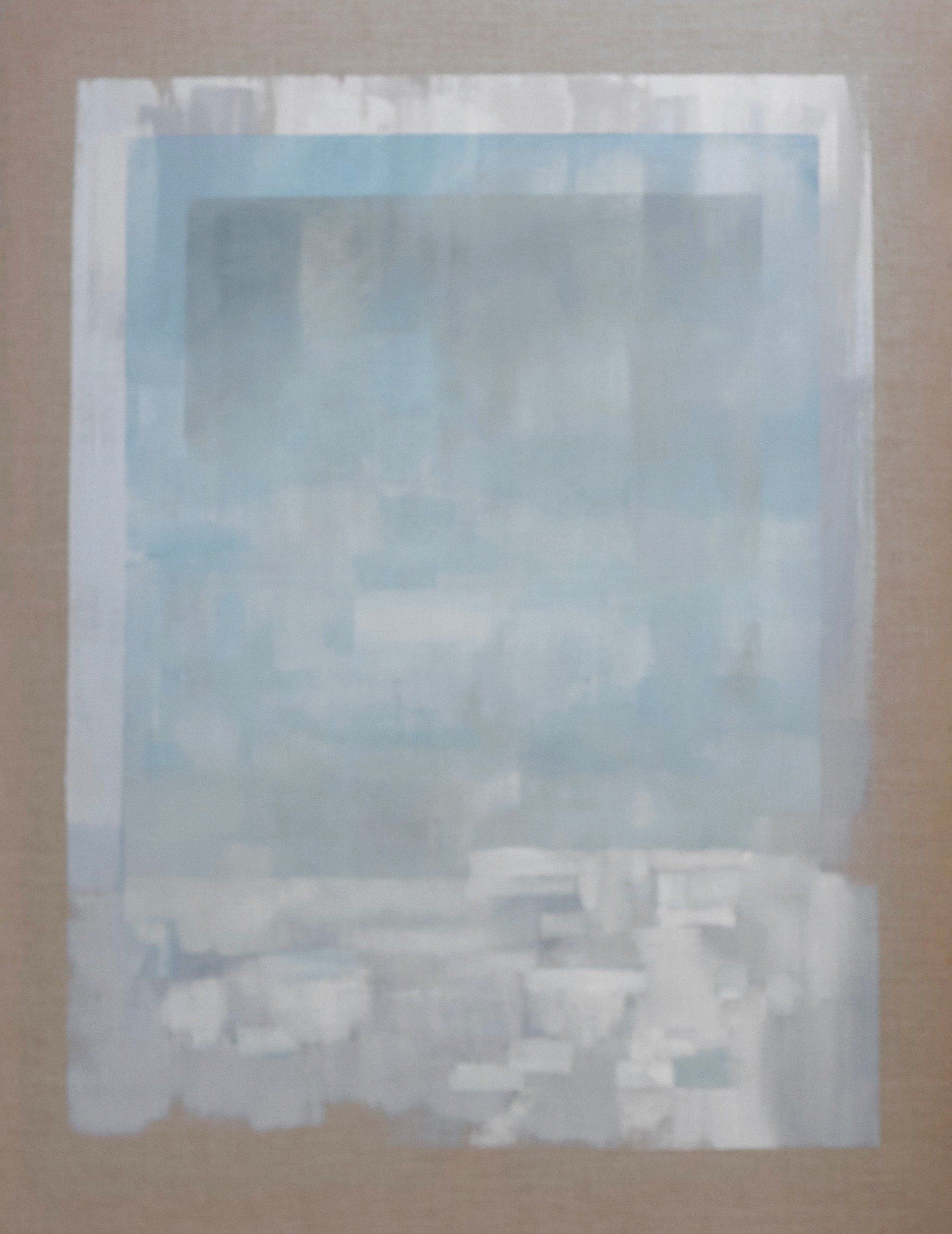 Il y a aussi des choix de traitements qui jalonnent son œuvre : sur des toiles enduites, des glacis sur des toiles brutes, et récemment des traitements où la peinture ne prend pas tout le format et crée un cadre dans le cadre.