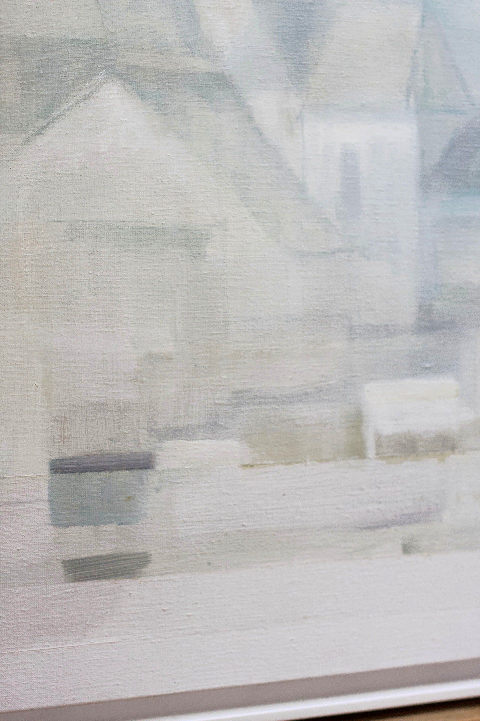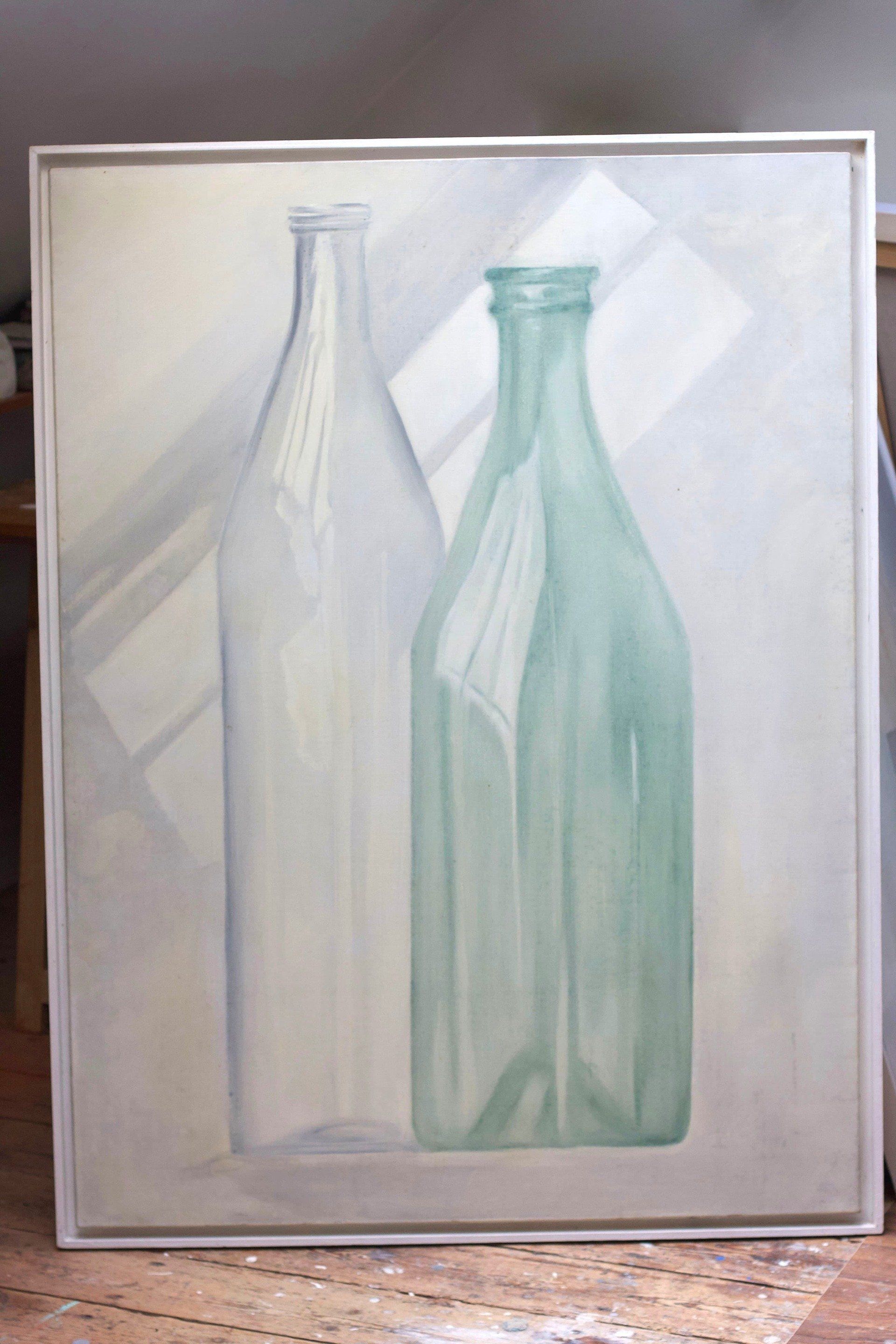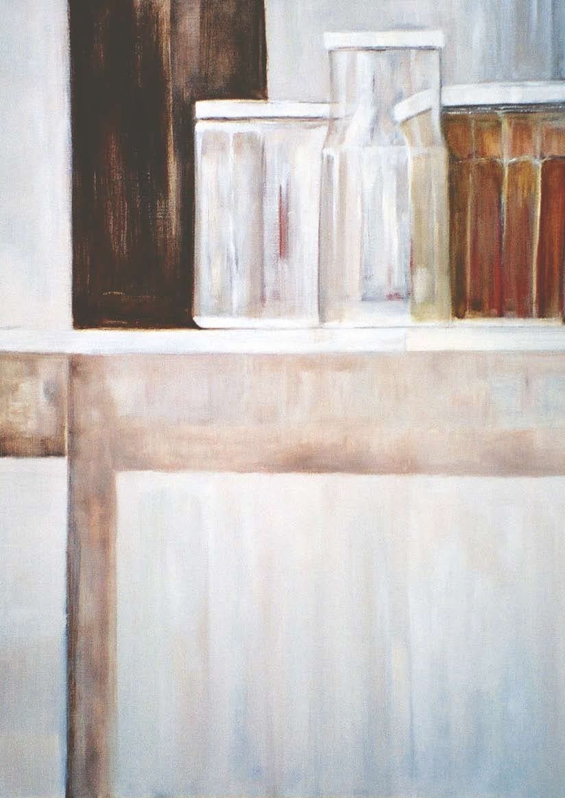 Il y a aussi des choix de traitements qui jalonnent son œuvre : sur des toiles enduites, des glacis sur des toiles brutes, et récemment des traitements où la peinture ne prend pas tout le format et crée un cadre dans le cadre.