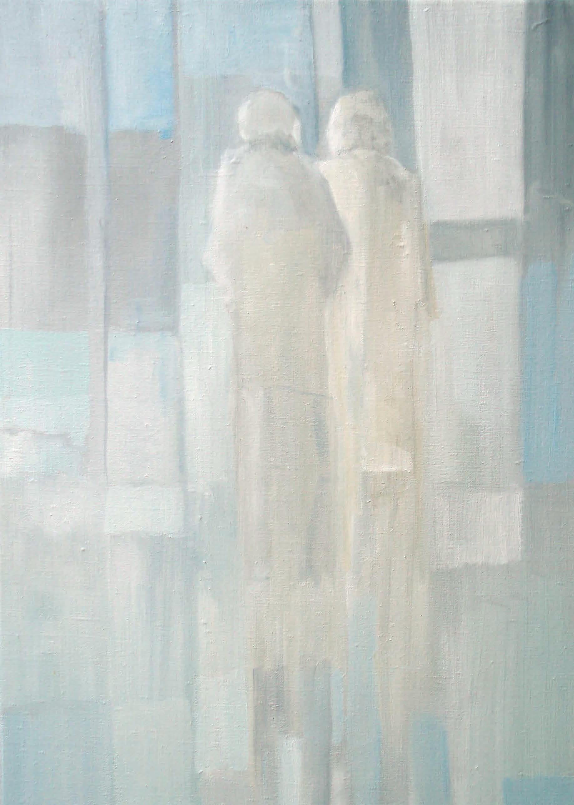 Dans le travail de Patrick Fournier, il y a des thèmes récurrents comme les portes, les cabines de bains, les églises, la mer, les paysages,... et au plus près de l'artiste, l'intérieur de sa maison et de son atelier. On y trouve peu de portraits mais, là encore, il cherche l'intime, à travers un autoportrait, sa femme ou un couple, le sien sans doute.